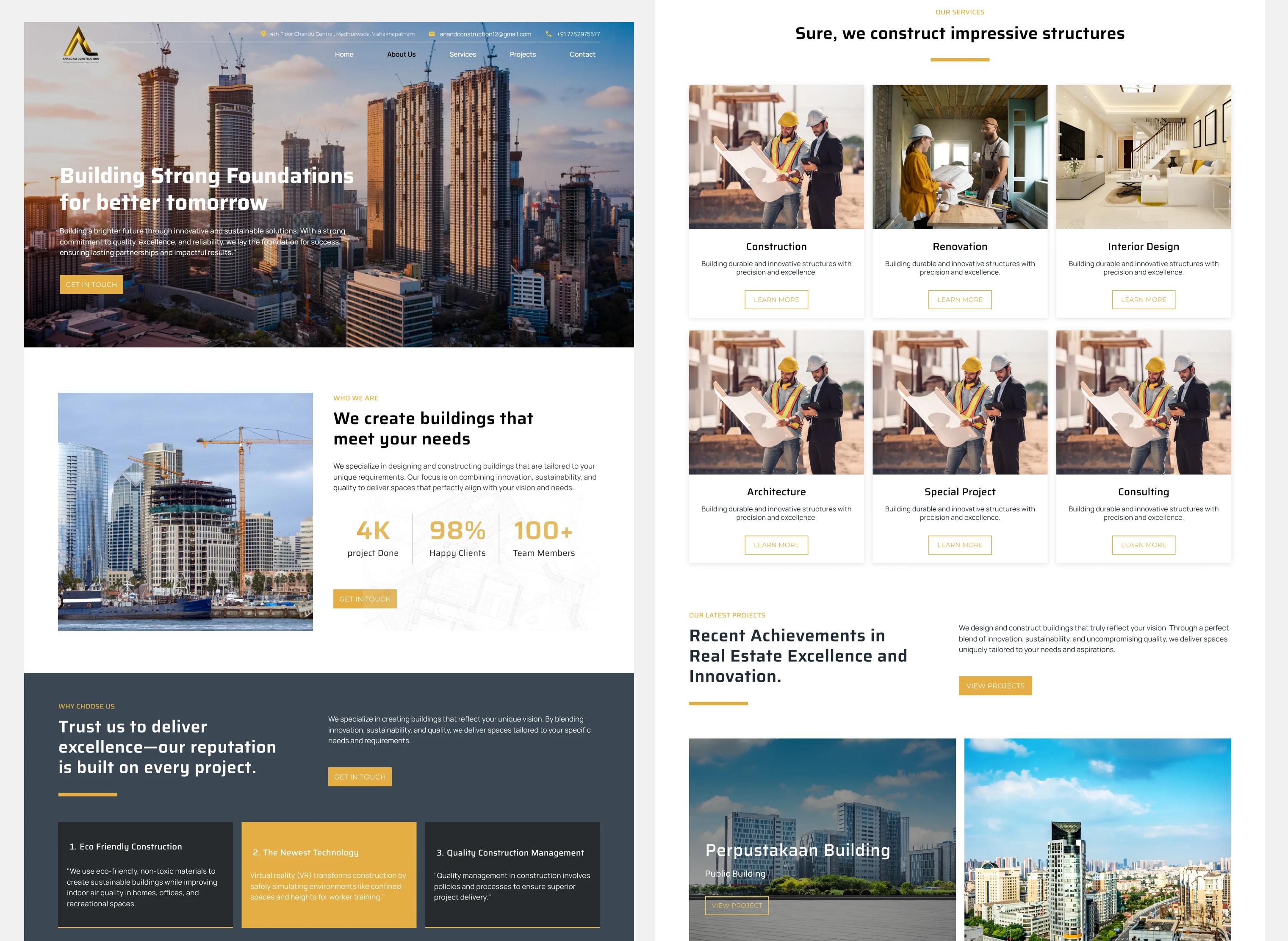 PrianDigitech ने हमारी वेबसाइट www.anandamconstruction.com को बेहद professional और impactful तरीके से डिज़ाइन किया। वेबसाइट responsive, fast और हमारे eco-friendly vision को अच्छी तरह दर्शाती है। उनकी टीम ने हमारी उम्मीदों से बढ़कर काम किया। हम उन्हें जरूर recommend करेंगे!